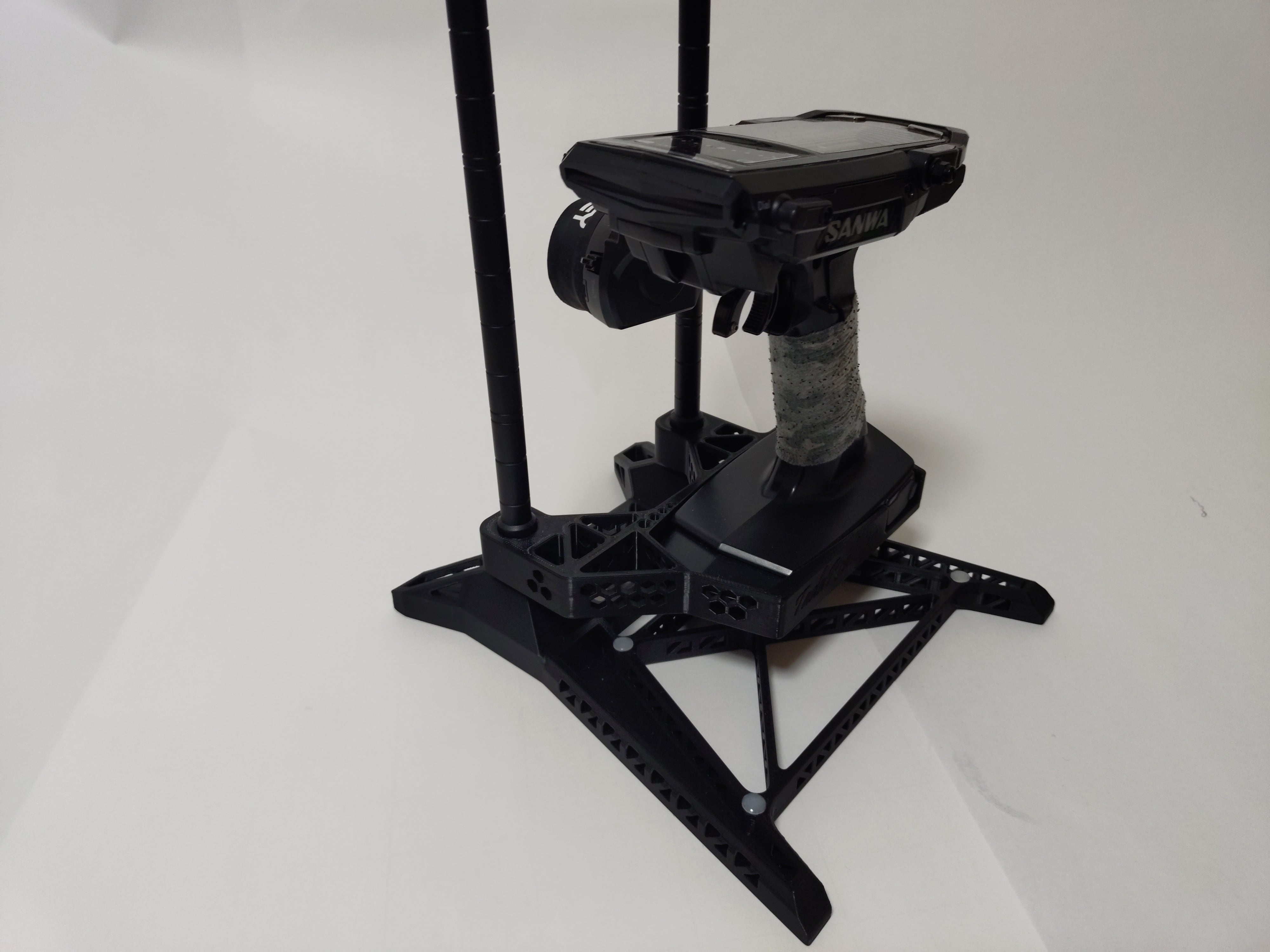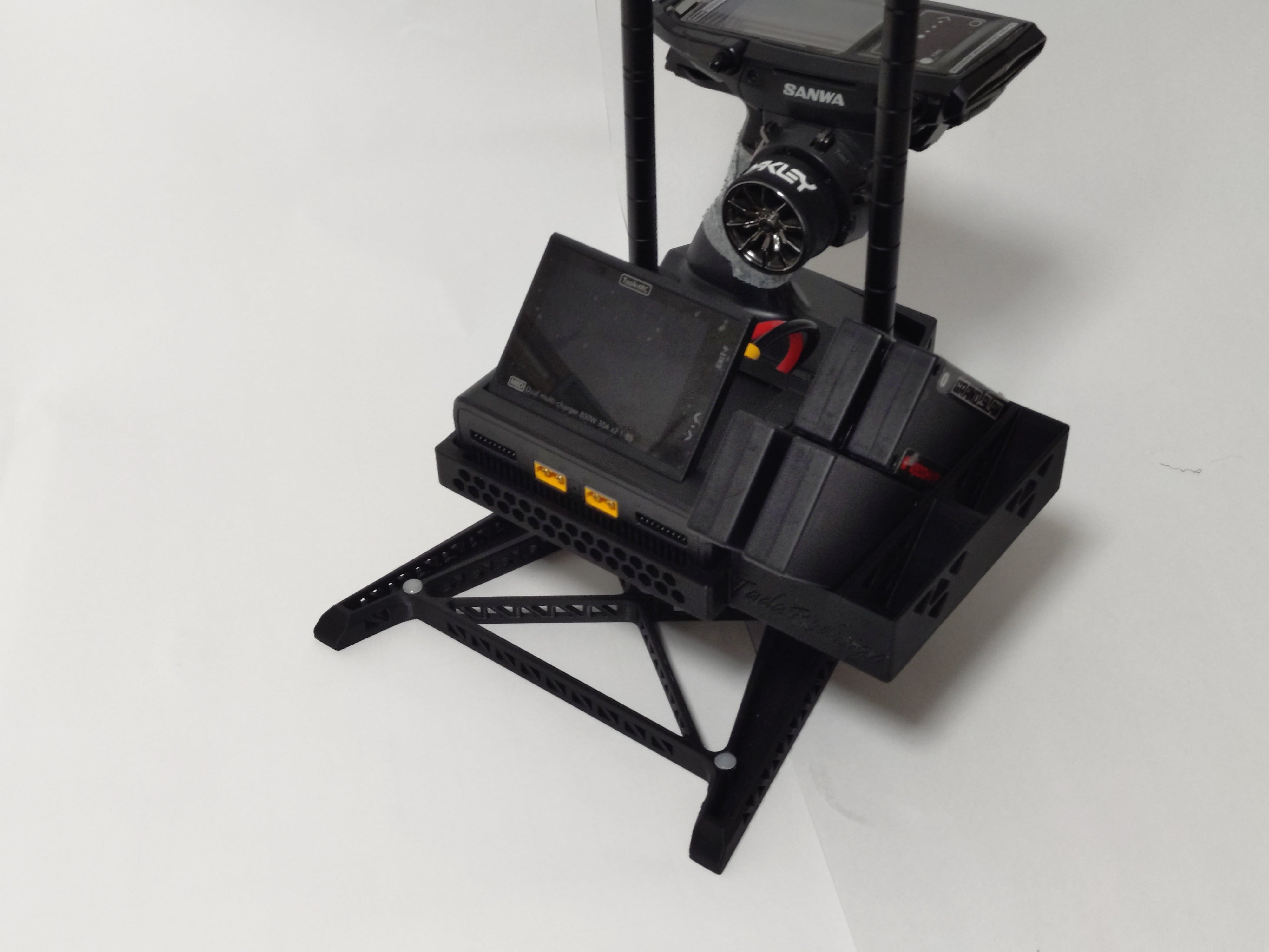 マルチラジコンスタンド用プロポスタンドはM17・M17S用となります。ピットにてプロポの置き場にこまったことありませんか?ラジコン愛好家にとって欠かせない便利なアイテムです。このプロポスタンドは、マルチラジコンスタンドに対応した設計が特徴で、プロポ(送信機)を安定して支えます。ピットスペースを有効に使うことができ、プロポを安定して収納可能です。