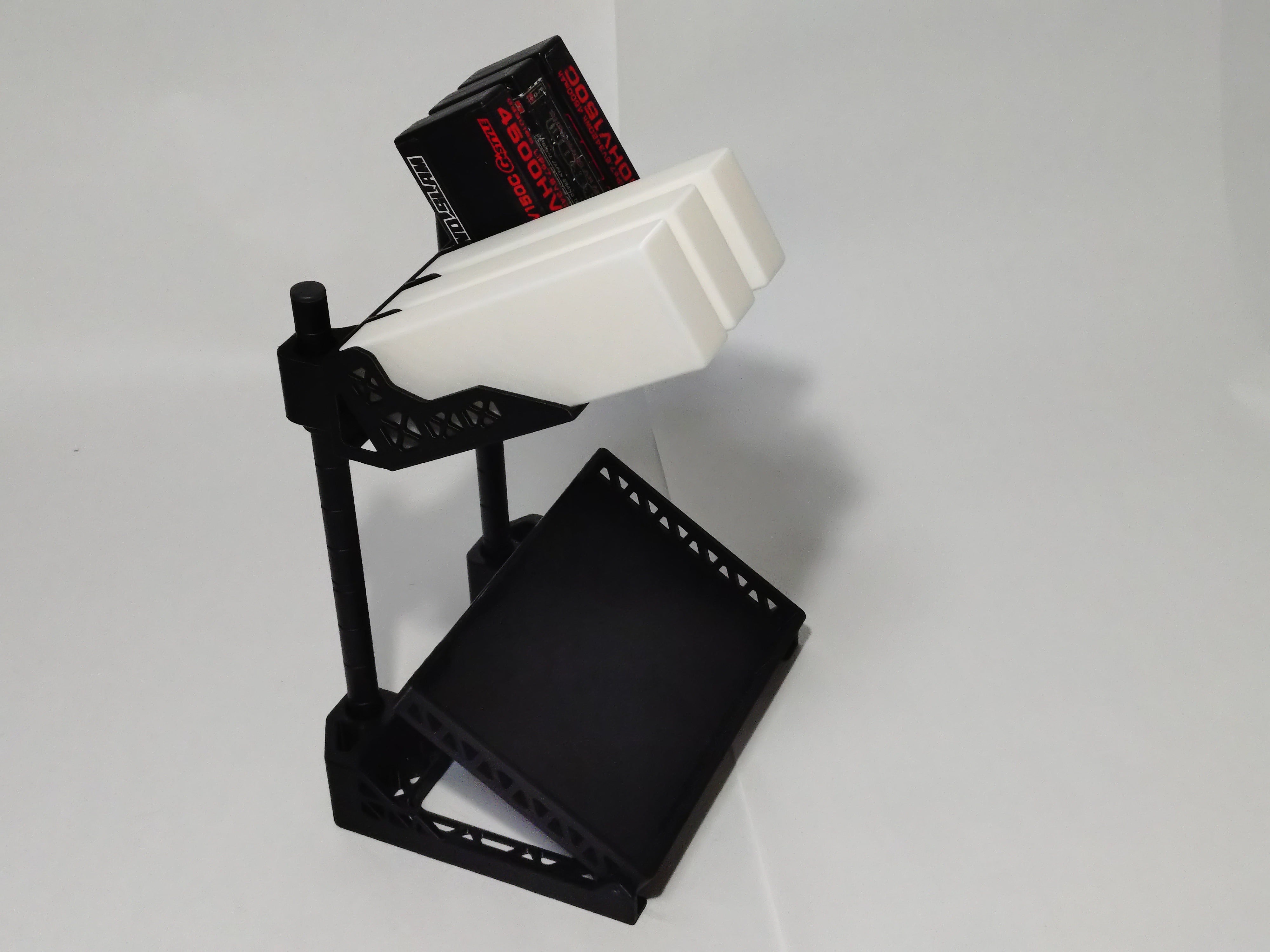 マルチラジコンスタンド用充電器スタンド(icharger406用)は、充電作業を快適にサポートする必須アイテムです。このスタンドは、icharger406に最適化されておりますが、icharger456にも使用でき、直置きでの使用も可能。後部にポールを設置し同時発売のバッテリースタンドとのセット利用にも対応しているため、便利に活用できます。マルチスタンド用のアイテムとしても充電器スタンド単体での使用も別アイテムとのセット利用もいろいろな使用方法ができます。トレーは充電器の液晶部分を開閉したくない場合は25度程度傾斜することができ、水平に設置することもできますので汎用トレーとしての使用も可能です。